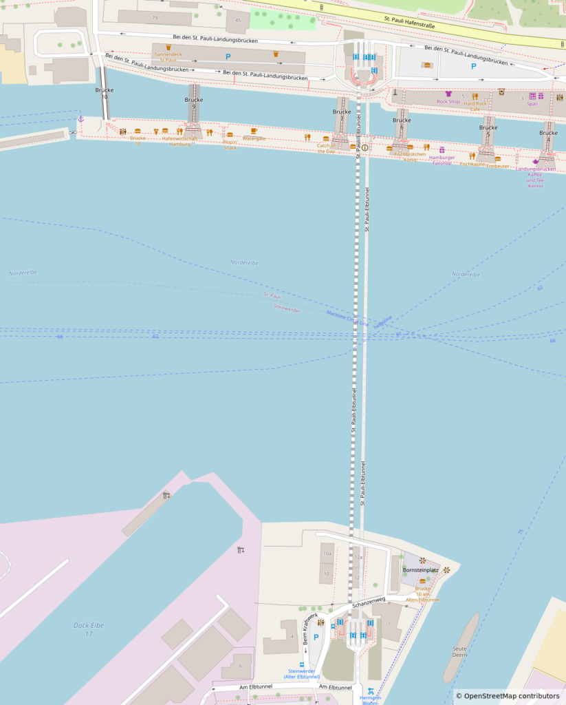 Startet man bei den Landungsbrücken, kommt man in Steinwerder wieder ans Tageslicht.