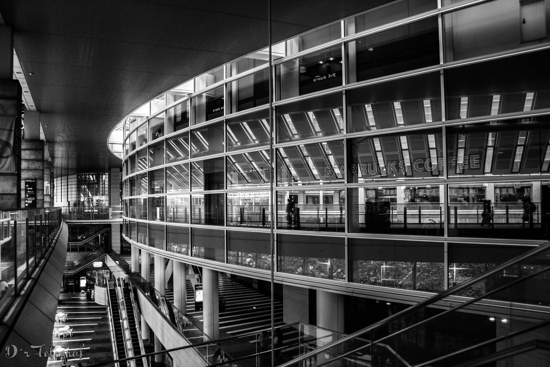 Das Foto für Februar ist auch schon einige Jahre alt und entstand während einer Geschäftsreise nach Japan. Abends in Tokio angekommen, und am nächsten Vormittag mit dem Shinkansen in die Präfektur Shizuoka war nicht viel Zeit zum Fotografieren. Die Shinagawa Station ist ein großer Bahnhof, der von den Shinkansen Schnellzügen angefahren wird. Tausende Reisende passieren täglich diesen Bahnhofskomplex, der sich natürlich auch für tolle grafische Schwarzweißaufnahmen eignet.