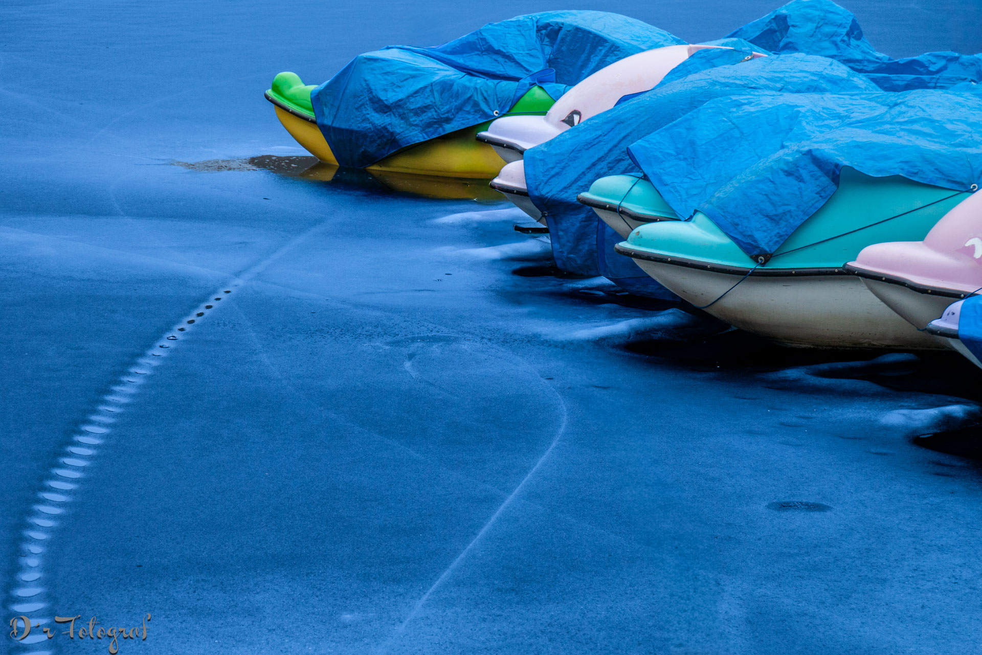 Auch am 25. Februar 2012 gab es zugefrorene Seen und Teiche. Und so mussten die Tretbootdelfine im Bad Säckinger Bergsee noch ein wenig unter ihrer Decke schlafen.