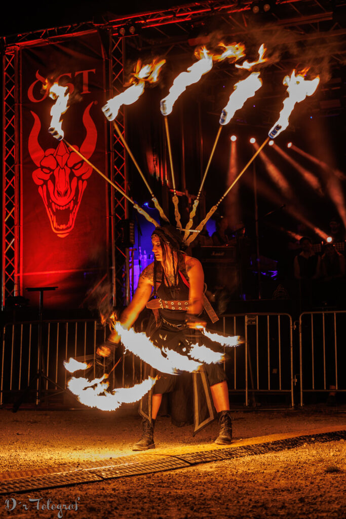 Playing with Fire at the DGT Event in Germany Aug 2024. DGT is a big event where all kind of Cosplay, Steampunk, Post Apocalyptics, Vikings, have fun for a couple of days.