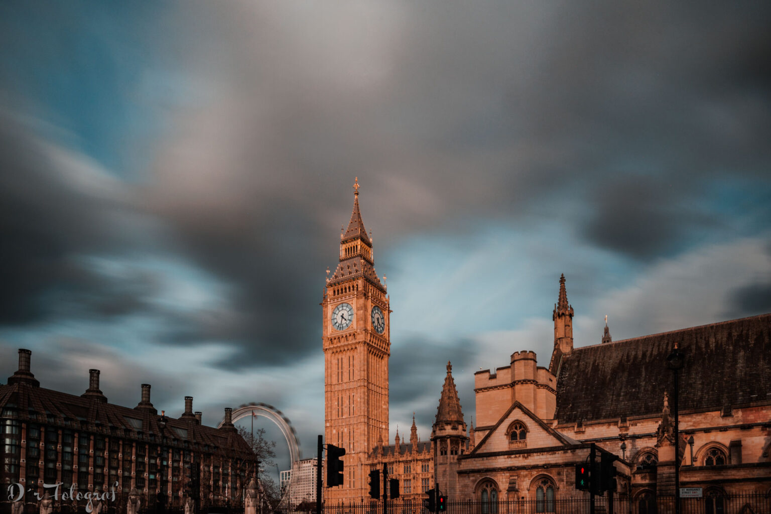 22. März 2024: Mal Sonne, mal keine, aber immer Wind. So haben wir ein Wochenende in London erlebt. Und um halb fünf nachmittags wurde Big Ben richtig schön von der Sonne angeleuchtet. So konnte ich vom Parliament Square Garden den Turm mit einem Teil des Parlaments und einem Stück der St. Stephen’s Chapel ablichten. Das London Eye Riesenrad sieht nur so aus, als ob es sich wie wild dreht: Die Belichtungszeit betrug 30 Sekunden, damit die Wolken auch ein wenig verschwommen wirken.
